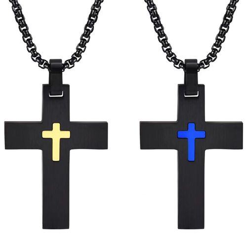 COI Titanium Black Gold Tone/Blue Cross Pendant. Titanium is an extraordinarily hard metal alloy which is amazingly scratch-resistant. In fact, it is so hard that only a few naturally occurring minerals can even scratch it. That's means that our exotic titanium pendants will hold their polished-finish vastly longer than any other pendants made. To give you an idea, these solid titanium pendant are over 5 times harder than the toughness stainless steel.