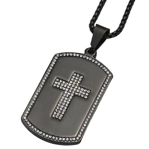 COI Titanium Black/Gold Tone/Silver Dog Tag Cross Pendant With Cubic Zirconia. Necklace sold separately.