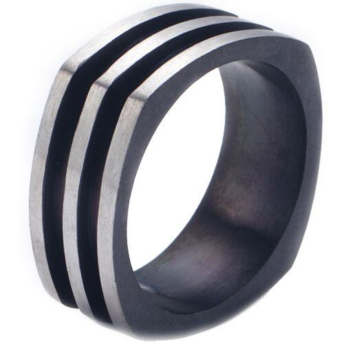 **COI Titanium Silver/Black/Gold Tone Silver Grooves Square Ring-8368