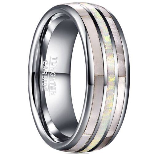 COI Tungsten Carbide Abalone Shell & Crushed Opal Pipe Cut Flat Ring. Comfort fit with inside round shank. A 100% tailor-made ring for you. Classic with delicated details, unsurpassed quality plus incredible value! Perfect as a wedding band, engagement ring or just for everyday wear due to its extreme comfort!
