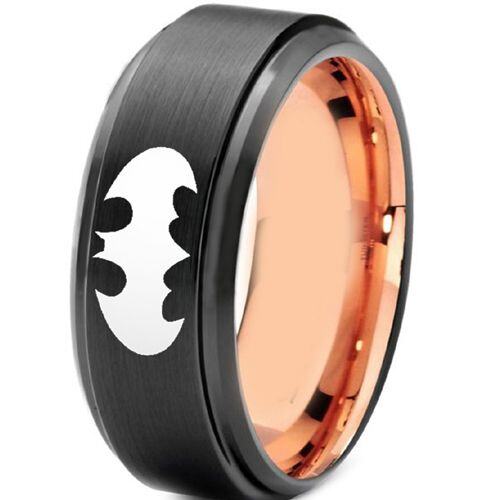 COI Tungsten Carbide Black Rose Bat Man Wedding Band Ring. Comfort fit with inside round shank. A 100% tailor-made ring for you. Classic with delicated details, unsurpassed quality plus incredible value! Perfect as a wedding band, engagement ring or just for everyday wear due to its extreme comfort!