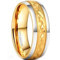 COI Gold Tone Titanium Ring With White Ceramic. Comfort fit with inside round shank. A 100% tailor-made ring for you. Classic with delicated details, unsurpassed quality plus incredible value! Perfect as a wedding band, engagement ring or just for everyday wear due to its extreme comfort!