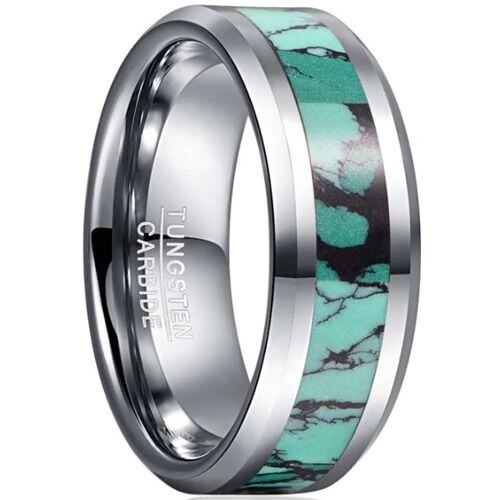 **COI Tungsten Carbide Black Green Camo Beveled Edges Ring-7837AA